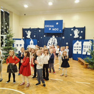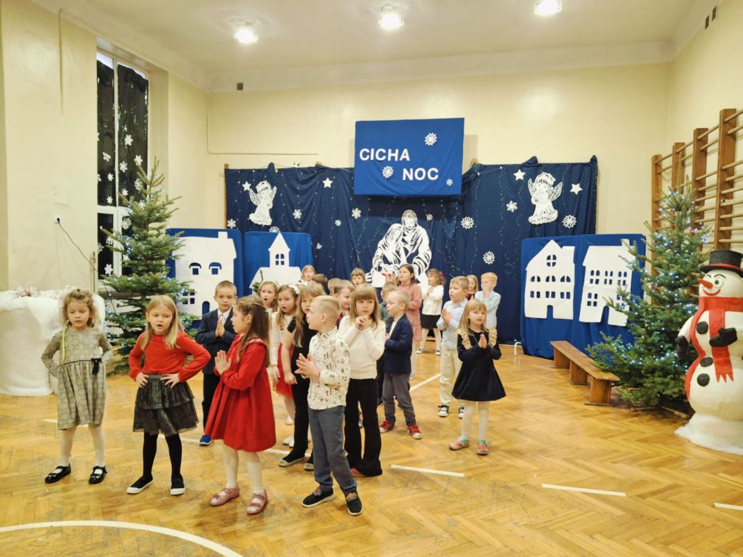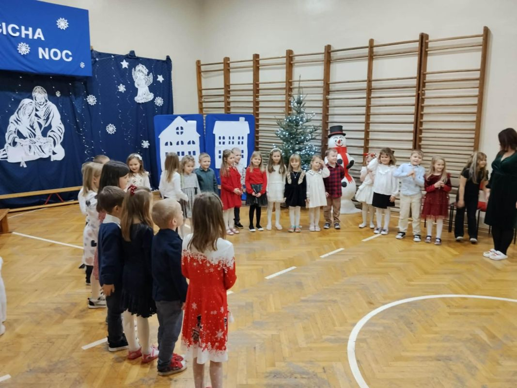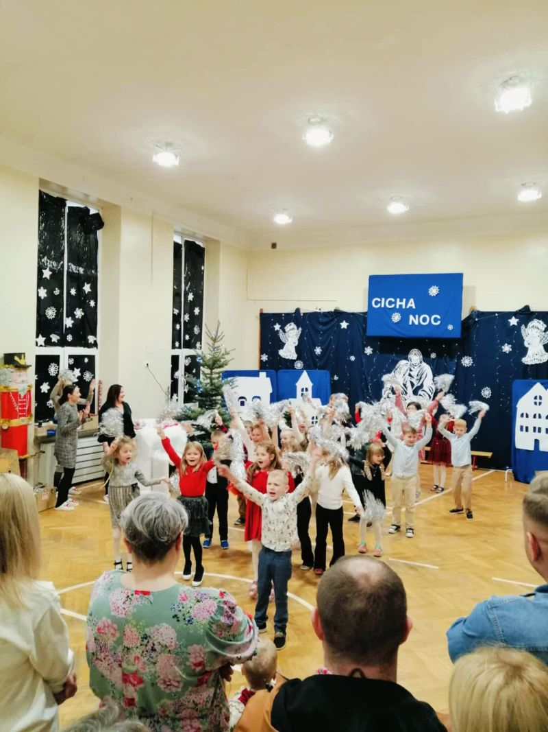 Dzieci rozpoczęły je uroczystym tańcem poloneza, który zaprezentowały rodzicom w ramach innowacji pedagogicznej, a następnie przedstawiły krótki występ w rytmie świątecznych piosenek. Nie zabrakło również muzycznego akcentu w języku angielskim.